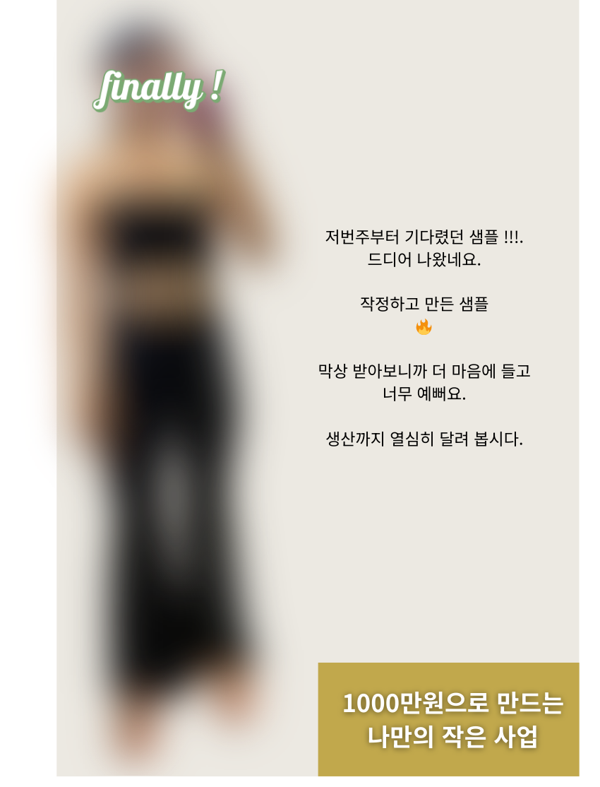 샘플이 나오기전까지 자사몰 셋팅을 하고, 인스타에 글도 올리고 홍보도 하고 싶었어요. 상품이 나오기 전에 홍보를 어느정도 돌려놔야한다고 생각했습니다.