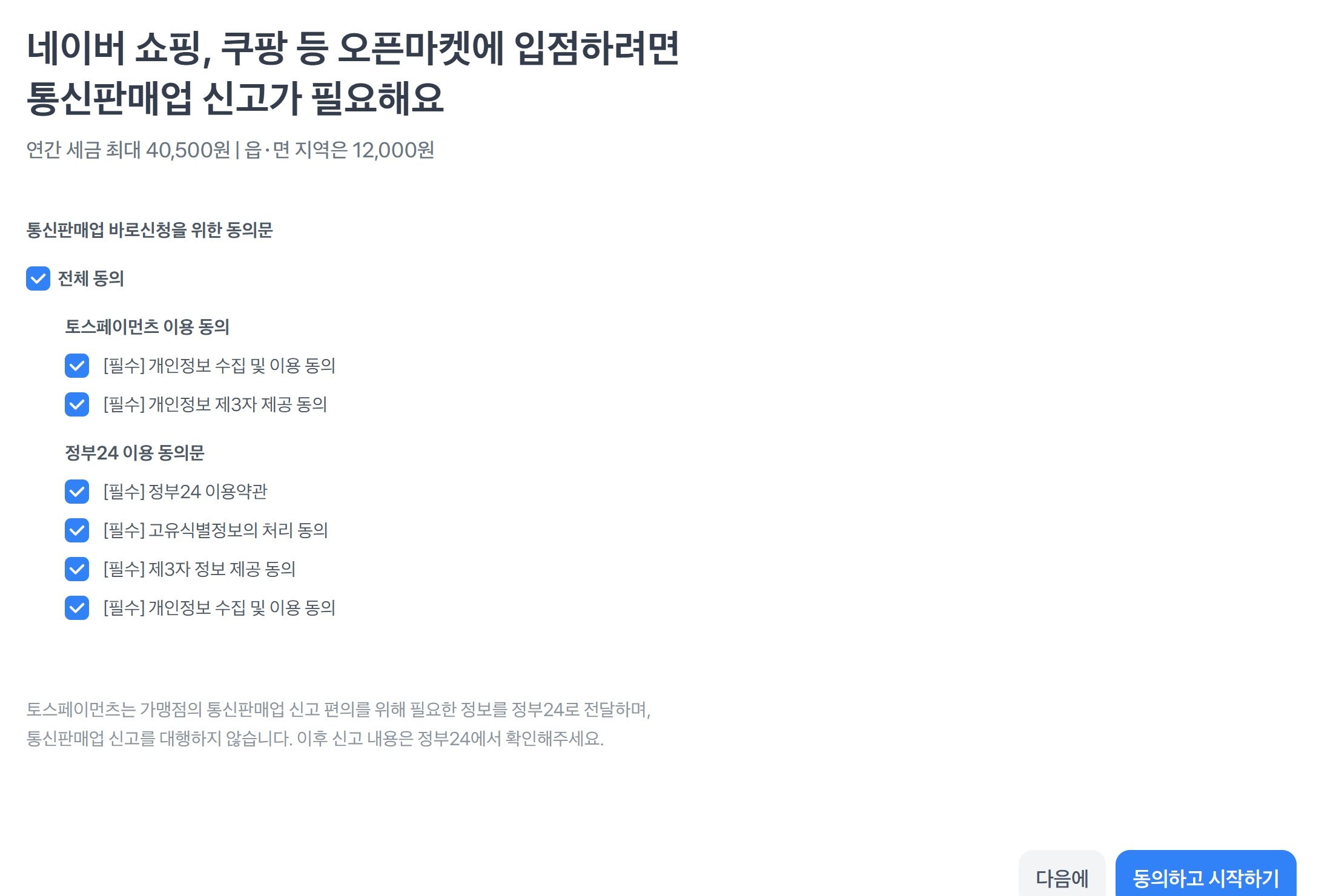 후후 요리교실 끝나고 바로 집에 올라와서 통신판매업 신고를 진행해 줍니다.
